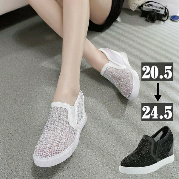 レディース スニーカー PU メッシュ ヒール4.5cm インヒール5cm 3色展開 厚底 レースアップ 7サイズ バックジッパー 脚長 美脚 スポーツ カジュアル 快適 通気性 安定感 弾力性 シンプル 詳しく見る