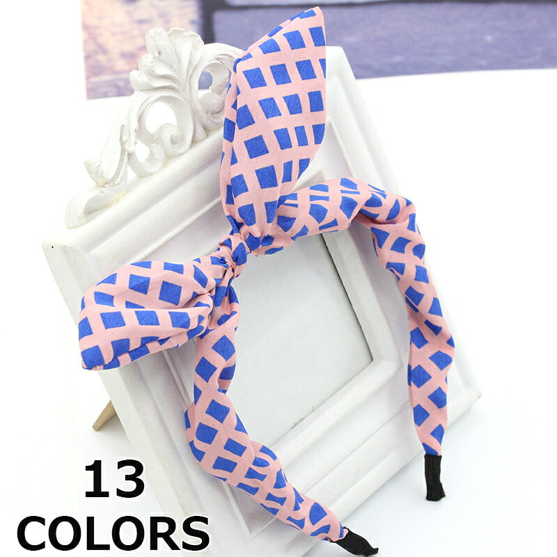 リボンカチューシャ ヘアアクセサリー りぼん キッズ 選べる5色 市松模様のカラフルリボンカチューシャ[hf1054]ダンス コスプレ 結婚式 ウェディング パーティー 衣装にも♪【hf-o】【t-50】【アウトレット】