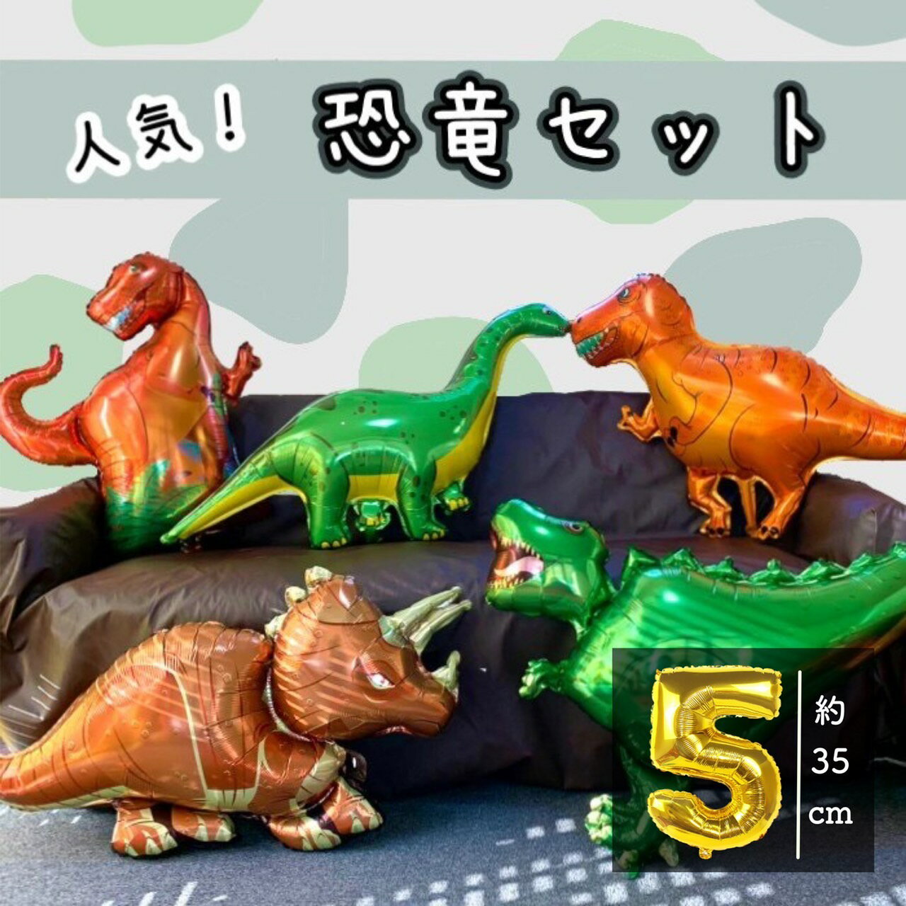 大きい恐竜5体とナンバーセット バルーン 子ども 大人気 誕生日 男の子 女の子 お祝い プレゼント バースデー 人気 サプライズ 1歳 2歳 3歳 こども園 小学生 孫 ギフト オススメ アルミバルーン 風船 ダイナソー ティラノサウルス 1500円ポッキリ ポイント消化 54-3