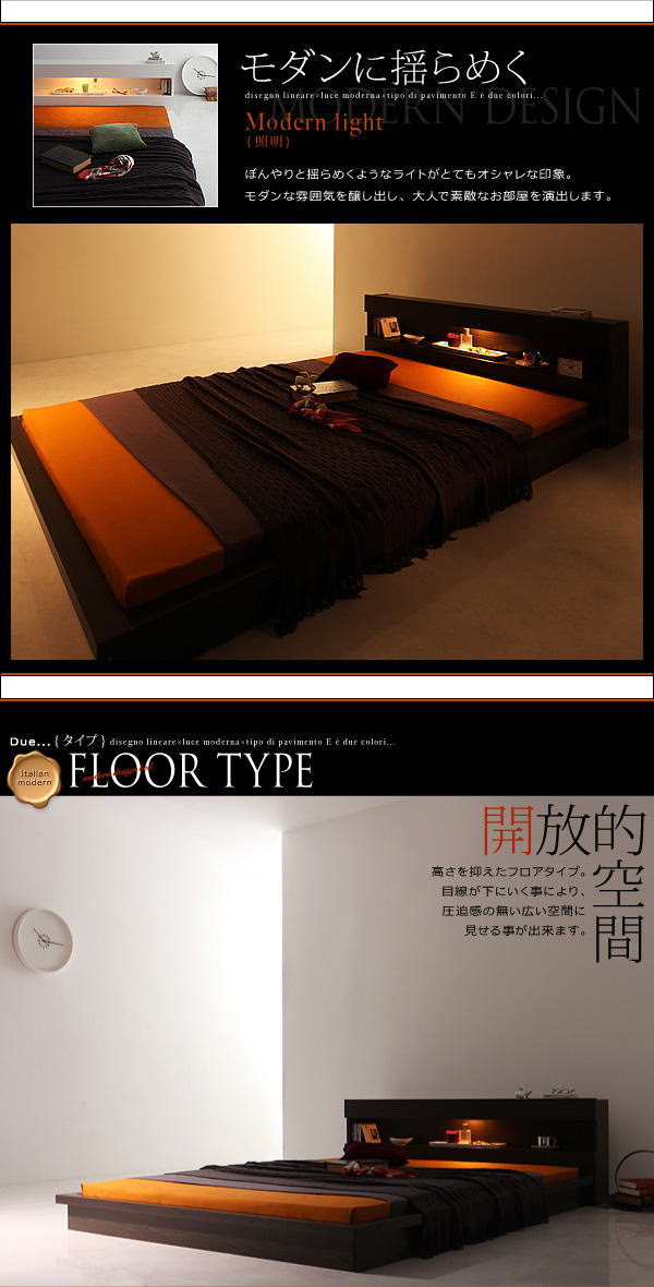 モダンライト フロアベッド セミダブルサイズフレームとラテックス入り国産ポケットコイルマットレスのセット 【関連ワード セミダブルベッド セミダブルサイズベット ローベッド スノコ すのこベッド ヘッドボード付きベッド モノトーン】