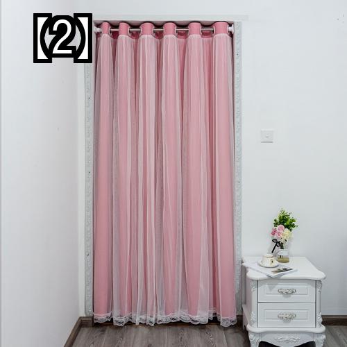 のれん おしゃれ カーテン 間仕切り 目隠し ドアカーテン 冷気遮断 遮光 断熱 防風 キッチン 玄関 リビング 寝室 つっぱり棒 簡単取付け 勝手口 かわいい ピンク 青 グレー レース 無地