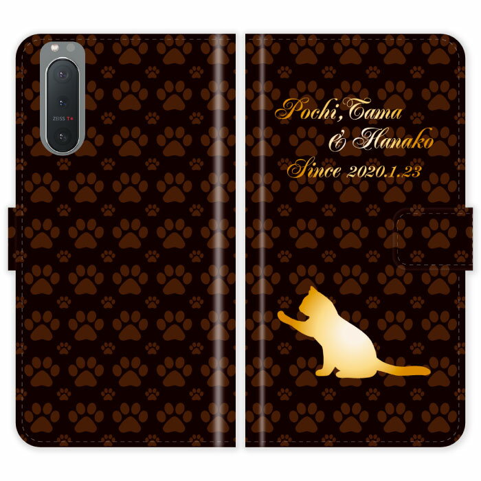 Xperia 5 II SO-52A SOG02 A002SO SO52A Xperia5II 手帳型 猫 肉球 猫柄 シルエット 名入れ 名前入り ケース カバー かわいい エクスペリア オーダーメイド オリジナル スマートフォンケース