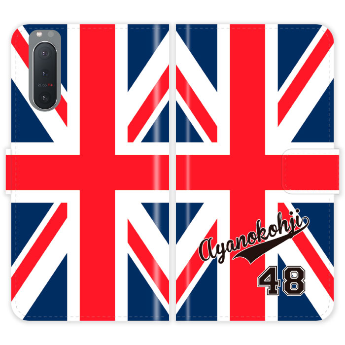Xperia 5 II SO-52A SOG02 A002SO SO52A Xperia5II 手帳型 ユニオンジャック ユニフォーム 名入れ 名前入り ケース カバー 国旗 イギリス スポーツ エクスペリア オーダーメイド オリジナル スマートフォンケース