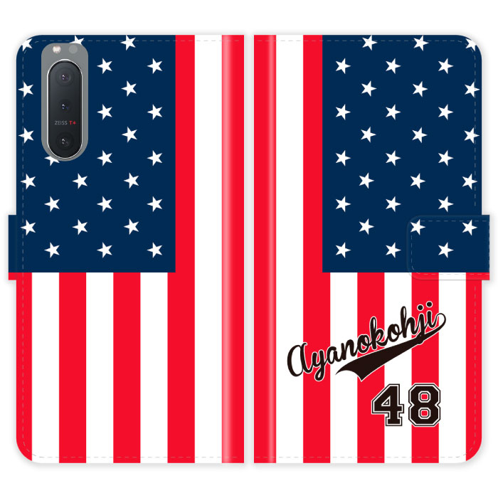 Xperia 5 II SO-52A SOG02 A002SO SO52A Xperia5II 手帳型 星条旗 ユニフォーム 名入れ 名前入り ケース カバー 国旗 アメリカ スポーツ エクスペリア オーダーメイド オリジナル スマートフォンケース