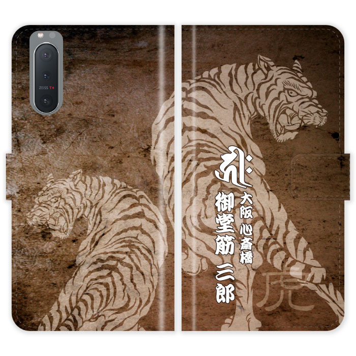 Xperia 5 II SO-52A SOG02 A002SO SO52A Xperia5II 手帳型 和柄 虎 梵字 名入れ 名前入り ケース カバー かっこいい エクスペリア オーダーメイド オリジナル スマートフォンケース 野球 球団 阪神 タイガース