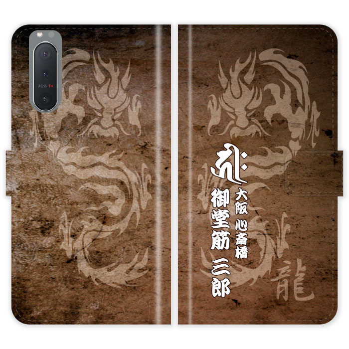 Xperia 5 II SO-52A SOG02 A002SO SO52A Xperia5II 手帳型 和柄 龍 梵字 竜 名入れ 名前入り ケース カバー かっこいい エクスペリア オーダーメイド オリジナル スマートフォンケース 野球 球団 中日 ドラゴンズ