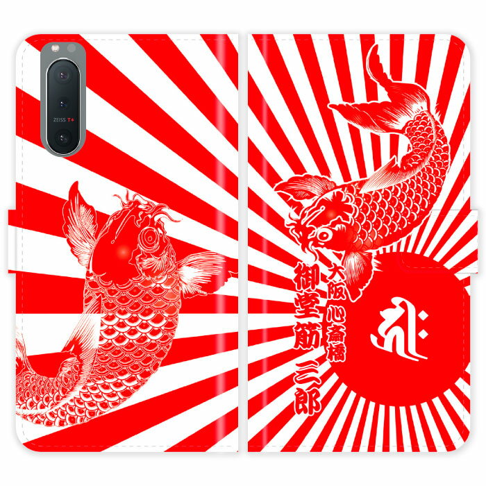 Xperia 5 II SO-52A SOG02 A002SO SO52A Xperia5II 手帳型 和柄 鯉と日章旗 旭日旗 梵字 名入れ 名前入り ケース カバー かっこいい エクスペリア オーダーメイド オリジナル スマートフォンケース 野球 球団 広島 カープ