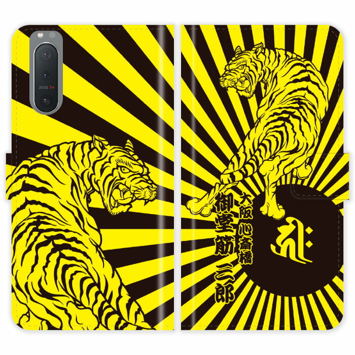 Xperia 5 II SO-52A SOG02 A002SO SO52A Xperia5II 手帳型 和柄 虎と日章旗 旭日旗 梵字 名入れ 名前入り ケース カバー かっこいい エクスペリア オーダーメイド オリジナル スマートフォンケース 野球 球団 阪神 タイガース