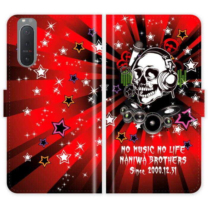 Xperia 5 II SO-52A SOG02 A002SO SO52A Xperia5II 手帳型 スカル DJ ミュージック ドクロ ガイコツ 名入れ 名前入り ケース カバー かっこいい エクスペリア オーダーメイド オリジナル スマートフォンケース
