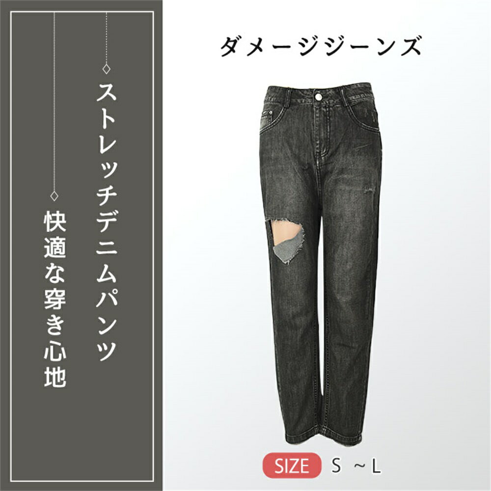 【即納】ダメージ レディース ジーンズ 穴開きデニムパンツ ゆったり ジーパン デニム クラッシュパンツ ボトムス ジーンズ ダメージ加工 ブラック S M L ボトムス ジーンズ ジーパン ジーンズ 上品 ファッション OL 通勤 ネイビー