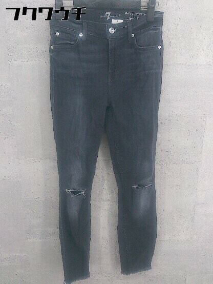 ◇ 7 FOR ALL MANKIND ダメージ加工 カットオフ ジーンズ デニム パンツ サイズ24 ブラック レディース 【中古】