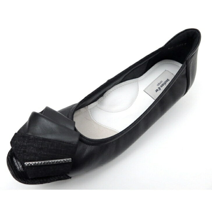 section dor compo セクションドール SD3848 Bブラック フラット シューズ レディースカッター パンプス ベルト飾り ウォーキングシューズ section dor compo セクションドールのフラットシューズ♪