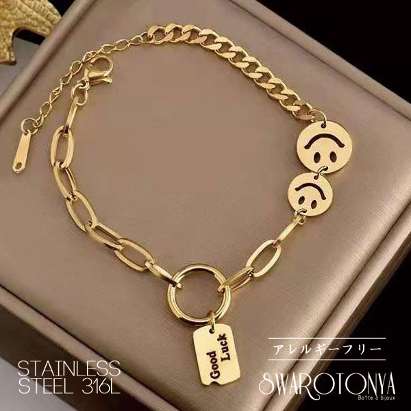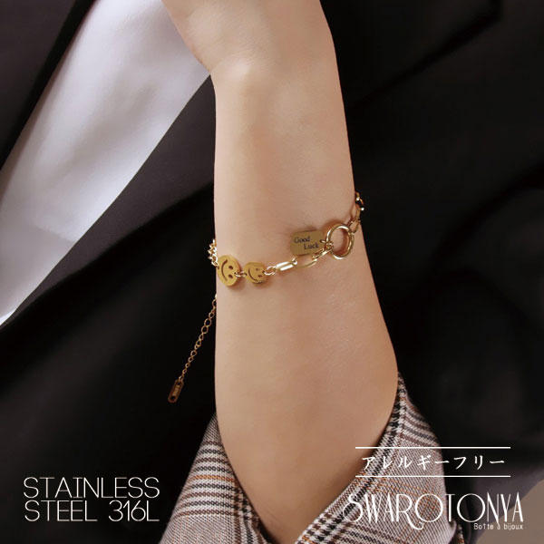 ステンレス ブレスレット スマイル ニコちゃん/ブレスレット 華奢ブレスレット 上品 デイリー 安心 金属アレルギー 結婚式 プレゼント パーティー ジュエリー アクセサリー ニッケルフリー 女性 スワロ問屋