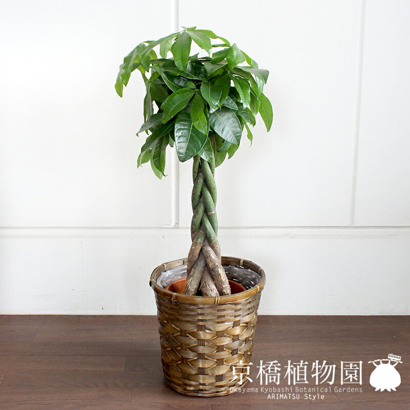 パキラ 科名:パンヤ(アオイ)科 属名:パキラ属 学名:Pachira 竹製のバスケット鉢カバーに入れてお届けします。