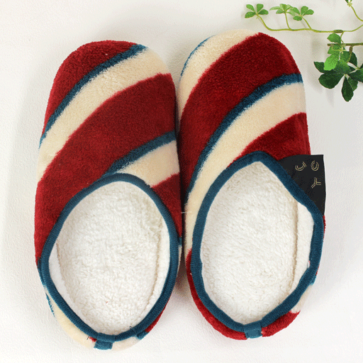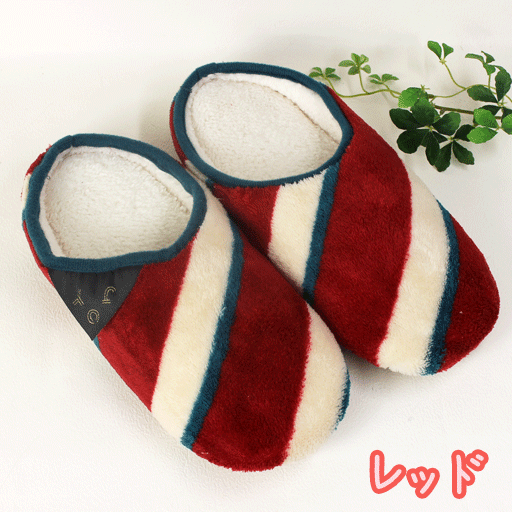 あったか起毛 スリッパ(ルームシューズ)ストライプ柄<レッド・マスタード・ネイビー>【冬用/暖かい/防寒】