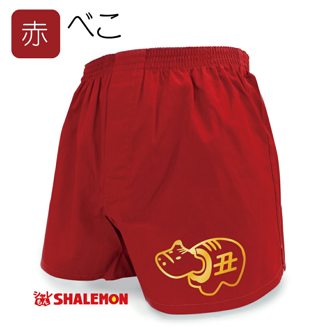 丑年 うし年 2021年 干支 縁起物【 選べる2柄 赤 紫 丑年トランクス 】 メンズ 男性 下着 プレゼント 贈り物 ギフト 新年 正月 年賀状 しゃれもん
